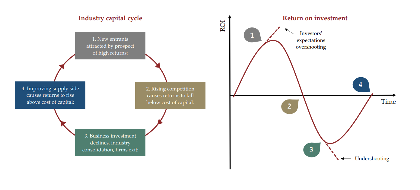 The capital cycle is a framework that allows Marathon to anticipate changes in profitability and equity valuation over the long-term. It is neither traditional ‘value' nor ‘growth' investing but lends itself to contrarianism and extended long-term holding periods.